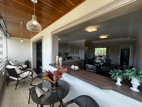 O imóvel possui 03 dormitórios amplos, sendo 02 suítes, 01 delas com closet e os outros com armários planejados, sala 02 ambientes integrada com a varanda que tem fechamento de vidro, 05 banheiros sendo 01 lavabo, cozinha bem arejada e repleta de armários planejados, despensa, ampla lavanderia, escritório. 03 vagas de garagem cobertas.