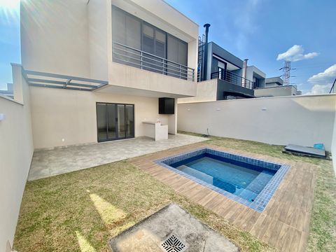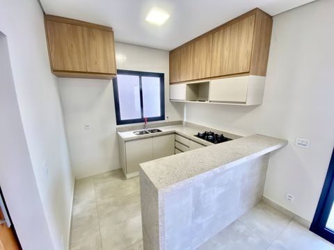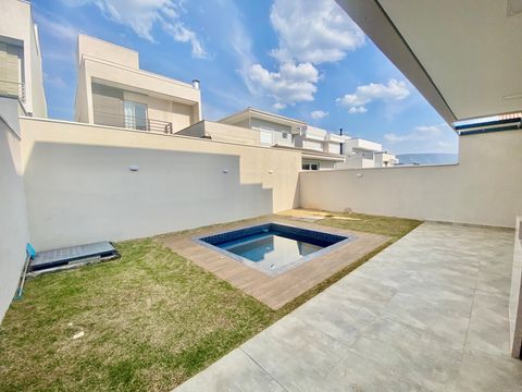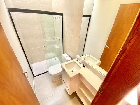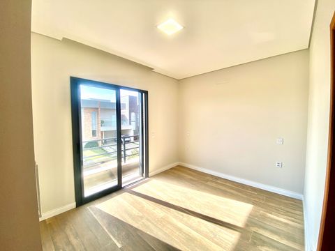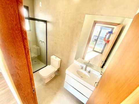 Casa com 03 dormitórios, sendo todos suítes, com varanda e persianas em alumínio e na suíte máster temos um amplo closet.