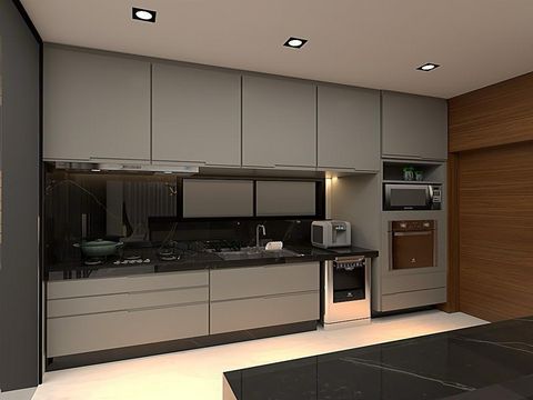 ✅No piso térreo tem sala de estar e jantar acoplada a área gourmet, escritório, cozinha, lavanderia e despensa.