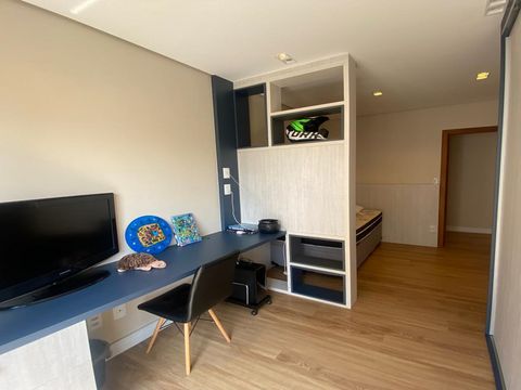Planejados Fabrilis em todos os ambientes, lareira e pé direito alto no living